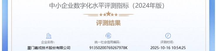 喜訊!嘉戎技術(shù)獲評《中小企業(yè)數(shù)字化評測指標》三級認證