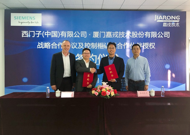 2019年12月17日下午,嘉戎&西門子戰(zhàn)略合作協(xié)議及控制柜認(rèn)證合作伙伴授權(quán)簽約儀式在廈門嘉戎技術(shù)股份有限公司舉行,嘉戎技術(shù)董事長蔣林煜、總經(jīng)理董正軍、西門子大中華地區(qū)副總裁Joerg Westerholt、西門子數(shù)字化工業(yè)集團福建總監(jiān)譚韜文及西門子大中華地區(qū)相關(guān)領(lǐng)導(dǎo)出席本次簽約儀式,共同見證了這個重要時刻。 此次合作簽約是嘉戎技術(shù)與西門子的強強聯(lián)手,也是為嘉戎技術(shù)致力于成為全球領(lǐng)先的膜技術(shù)企業(yè)助力護航,更是在踐行“打造精品、服務(wù)客戶、保護環(huán)境”的使命中的又一次升級,具有深遠的戰(zhàn)略意義。 簽約儀式現(xiàn)場,嘉戎技術(shù)總經(jīng)理董正軍向來訪的嘉賓介紹了嘉戎技術(shù)的發(fā)展歷程及產(chǎn)品服務(wù),董總表示:西門子是我們的親密合作伙伴,也是嘉戎產(chǎn)品的重要品質(zhì)保障,接下來,嘉戎技術(shù)將與西門子更加緊密合作,繼續(xù)打造精品,用高品質(zhì)產(chǎn)品和服務(wù)踐行我們的環(huán)保使命。 ////////// 西門子數(shù)字化工業(yè)集團福建總監(jiān)譚韜文向大家介紹了西門子數(shù)字化工業(yè)集團概況,并表達了繼續(xù)與嘉戎技術(shù)深入合作的意愿。 隨后,在大家的共同見證下,嘉戎技術(shù)總經(jīng)理董正軍與西門子數(shù)字化工業(yè)集團福建總監(jiān)譚韜文代表雙方鄭重地簽訂了戰(zhàn)略合作協(xié)議。 簽約儀式結(jié)束后,嘉戎技術(shù)總經(jīng)理董正軍帶領(lǐng)西門子數(shù)字化工業(yè)集團福建總監(jiān)譚韜文等嘉賓前往嘉戎裝備制造工廠參觀,雙方在西門子控制柜前進行合影。 新的平臺,更高的期許,嘉戎技術(shù)將與西門子強強聯(lián)合,用精湛品質(zhì)的設(shè)備產(chǎn)品,用不斷鉆研創(chuàng)新的技術(shù),用誠心踏實專注的服務(wù),為客戶解決環(huán)保難題,為國家守護綠水青山!